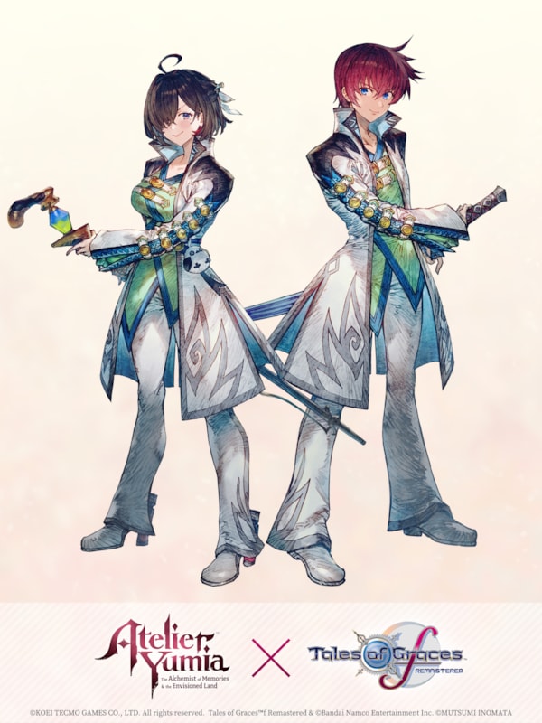 Atelier Yumia: The Alchemist of Memories & the Envisioned Land werkt samen met Tales of Graces f Remastered van Bandai Namco Entertainment voor een speciale outfit, die op een later moment als gratis DLC beschikbaar is. Ter viering van de samenwerking heeft de artiest Benitama een illustratie gemaakt met Yumia en Asbel, de hoofdpersoon van Tales of Graces f Remastered, in matchende outfits.